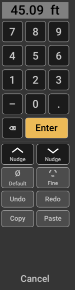 Position (X) – When the field is selected, the keypad may be used to input the horizontal distance from the origin point. The keypad nudge buttons may also be used to nudge the array.
