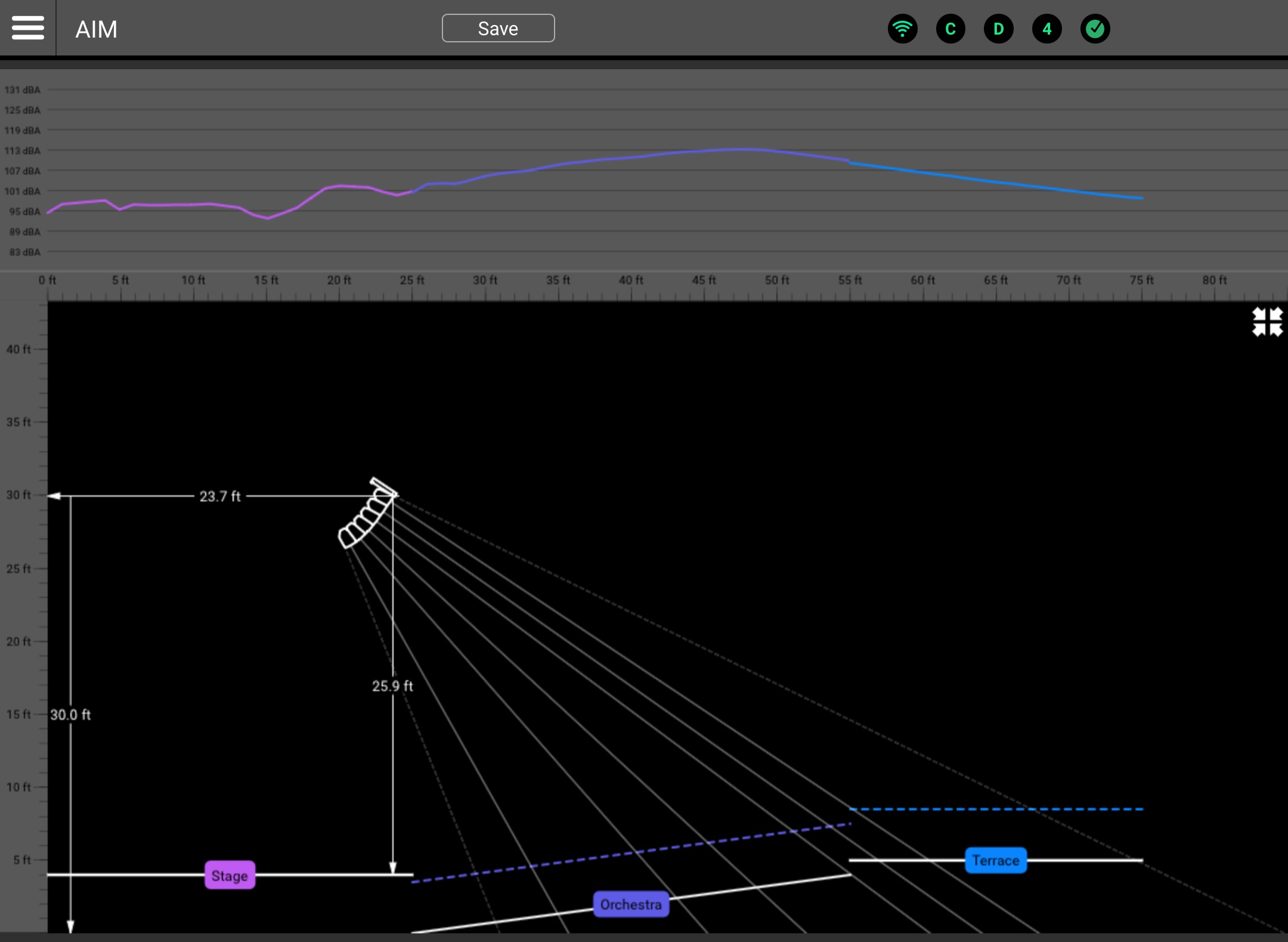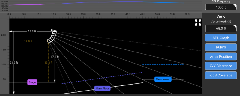 Expand / Collapse – The Venue model, rulers, and SPL graph can be expanded to occupy the full width of the screen and display an SPL graph with a greater range and higher resolution.
