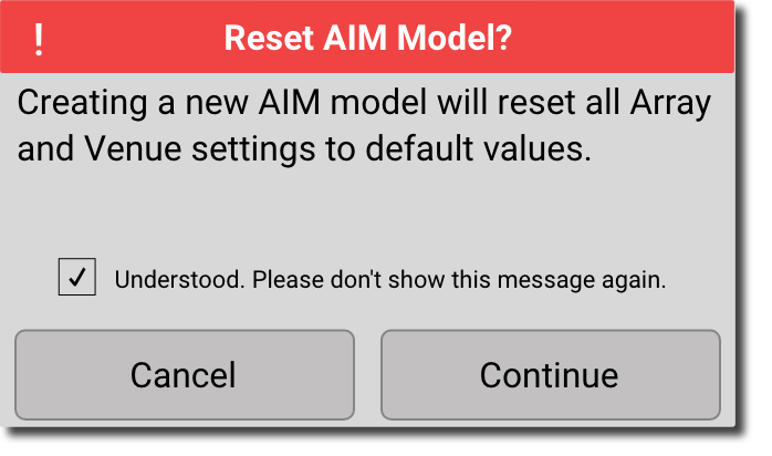 New – Creates a new AIM model with all parameters set to default and opens a naming dialog window. A popup window confirms the operation: