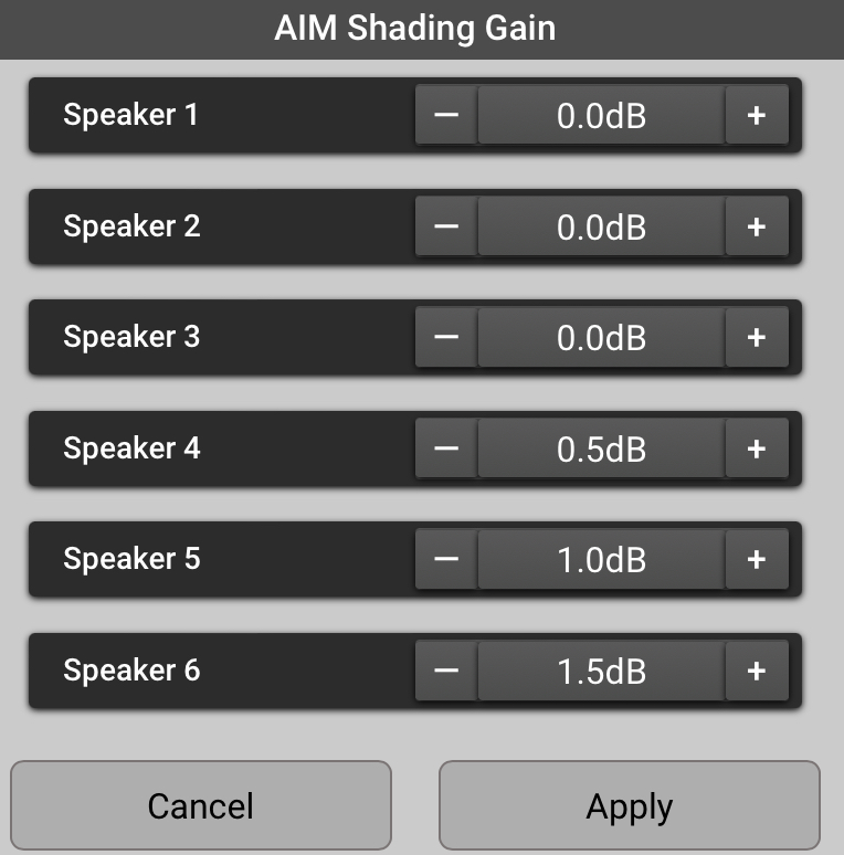 Speaker Model – Touch/click to display a dropdown menu where AIM compatible loudspeakers may be selected.