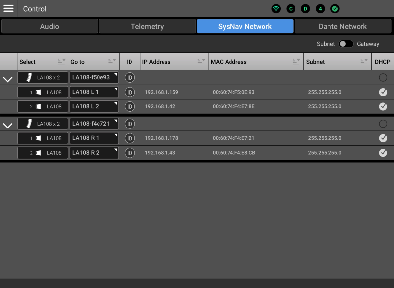 Subnet / Gateway – Toggles the function of the Subnet/Gateway column.
